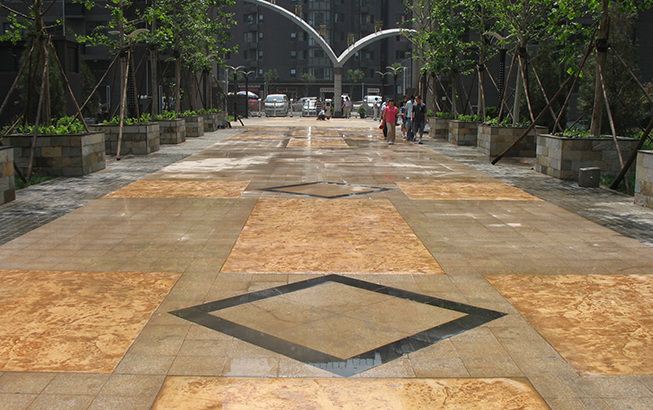 園、大型廣場(chǎng)以及室內(nèi)外主題裝飾等多種景觀環(huán)境中都得到了充分的體現(xiàn),目前擁有高承載透水藝術(shù)地坪、彩色壓印藝術(shù)地